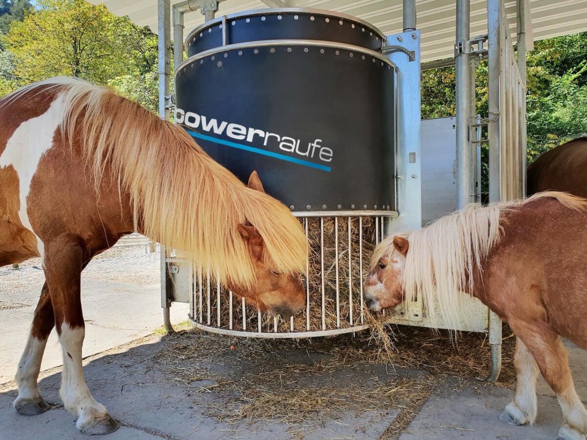 Die zeitgesteuerte Heurraufe. Die Heurraufe aus Edelstahl ermöglicht es Ihnen ihre Pferde in der Offenstall- oder in der Boxenhaltung über den Tag verteilt mit gesunden Heurationen zu versorgen. Die automatische zeitgesteuerte Heuraufe powerraufe (halbrund) ist mit 12-15Kg aufgelockertem Heu zu befüllen. Dieses wird über die eingestellten Fresszeiten kinderleicht rationiert zugeteilt. Optional ist die powerraufe mit einer eingebauten Heubefeuchtung erhältlich.