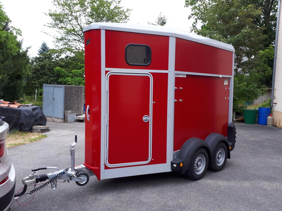 Das Pferdetaxi ist ein knallroter IforWilliams HB403 mit Frontausstieg. Mein Angebot: