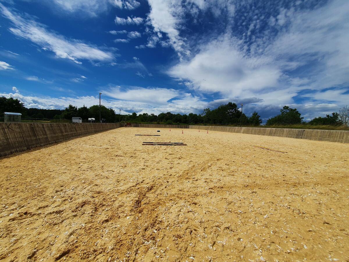 Hier in Aldingen bieten sich sehr gute Ausreitmöglichkeiten durch Wald und Wiesen. Des weiteren stehen ein großzügiger Reitplatz mit 25x50 Meter und Roundpen mit 20 Meter, inklusive Flutlicht und automatischer Bewässerung zur Verfügung.