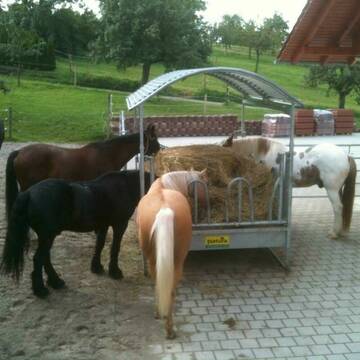 Platz in neuem kleinen Offenstall/Gruppenbewegungsstall für Freizeitpferd. Suchen einen netten verlässlichen Einsteller, der auf eine artgerechte Haltung Wert legt und gerne ins schöne Ausreitgelände baumelt. In unserem großzügigen Stallbereich haben wir viel überdachten Platz zum Liegen, Fressen und Laufen. Auch ein trockener befestigter Allwetterauslauf, der an den Stallbereich angrenzt, steht immer zum Laufen zur Verfügung. Es wird viel Wert auf gutes Heu gelegt, das aus eigener Ernte, immer 24 Std. Sommer wie Winter, unbegrenzt zur freien Verfügung steht. Die Pferde sind tagsüber bei guten Boden- und Wetterverhältnissen auf einer meiner reichlich vorhandenen Weiden, die sich direkt am Stall befinden, zur freien Bewegung. Es sind Strom, Pferdedusche und beheizte Tränken vorhanden.