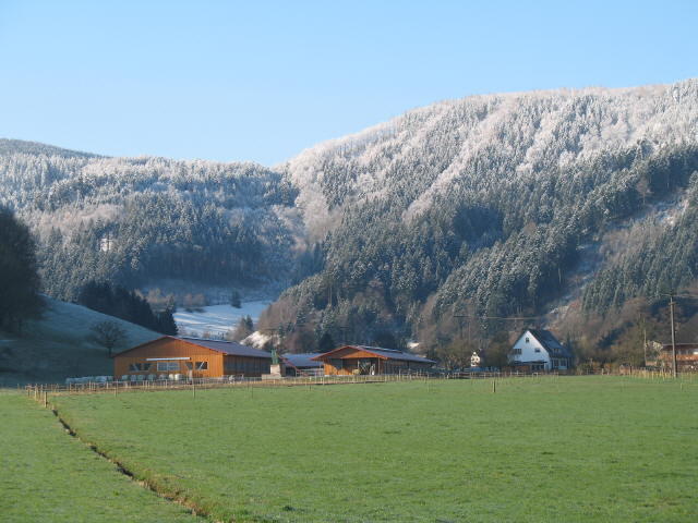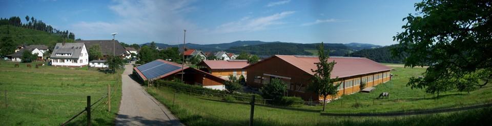 Wunderschön gelegene Reitanlage am Fuße des Schwarzwaldes mit altem Schwarzwaldhof. Eine an den natürlichen Bedürfnissen der Pferde orientierte Stallanlage mit Paddockboxen und Bewegungsstall, große Weiden und ein vielfältiges Ausreitgelände lassen das Herz des Pferdefreundes höher schlagen. Die helle Reithalle und die gut gepflegten Außenreitplätze und der Roundpen ermöglichen ein abwechslungsreiches Arbeiten mit dem Pferd. Bei den regelmäßig stattfindenden Kursen zu verschiedenen Schwerpunkten (Basispass, Westernreiten, Longieren, Horsemanship, gef. Ausritte) kann man sich neue Anregungen für die tägliche Arbeit mit dem Partner Pferd holen oder auch sich fit machen für turnierliche Anforderungen. In unseren gemütlichen Ferienwohnungen kann man bei Schwarzwaldblick wunderbar entspannen. Die Nähe zu Freiburg, Straßburg, Basel, Frankreich, der Schweiz und natürlich dem Hochschwarzwald ermöglicht viele reizvolle Ausflüge.
