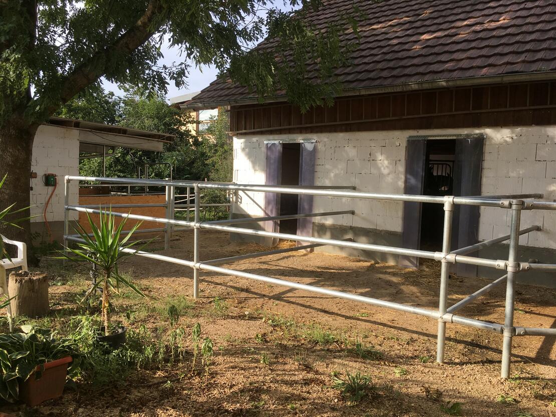 Unsere idyllische Reitanlage liegt im Dreiländereck Deutschland, Frankreich, Schweiz in verkehrsgünstiger Lage, ca. 20 Minuten bis zur Stadtmitte Basel. Wir bieten Vollpension mit diversen Serviceleistungen, sowie kompetenten Unterricht und Beritt, Ausbildung von Reiter und Pferd durch Pferdewirtschaftsmeister Reiten und regelmäßigen Kursen mit namhaften Ausbildern. Zur Infrastruktur: neuer Außenreitplatz mit Topmineral Boden (26x40m); Reithalle (20x40m); Grasspringplatz mit festen Hindernissen (1 ha); Longierplatz; Abspritzplatz; Hängerparklatz, große Weiden, Winterpaddocks und guten Ausreitmöglichkeiten.