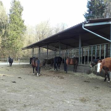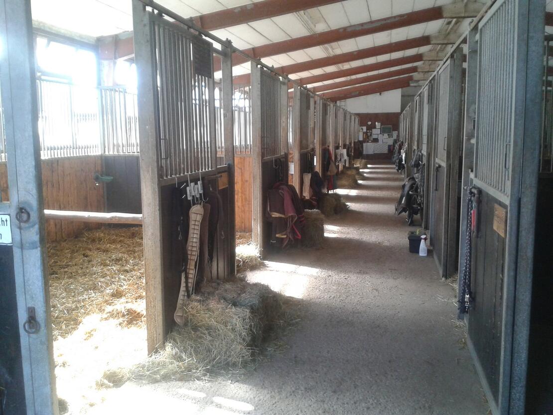 Unser Stall ist hell und luftig mit 25 Pferdeboxen . Täglich ist ein Koppelservice in 2 er Gruppen im Pensionspreis enthalten. Auch im Winter !!!