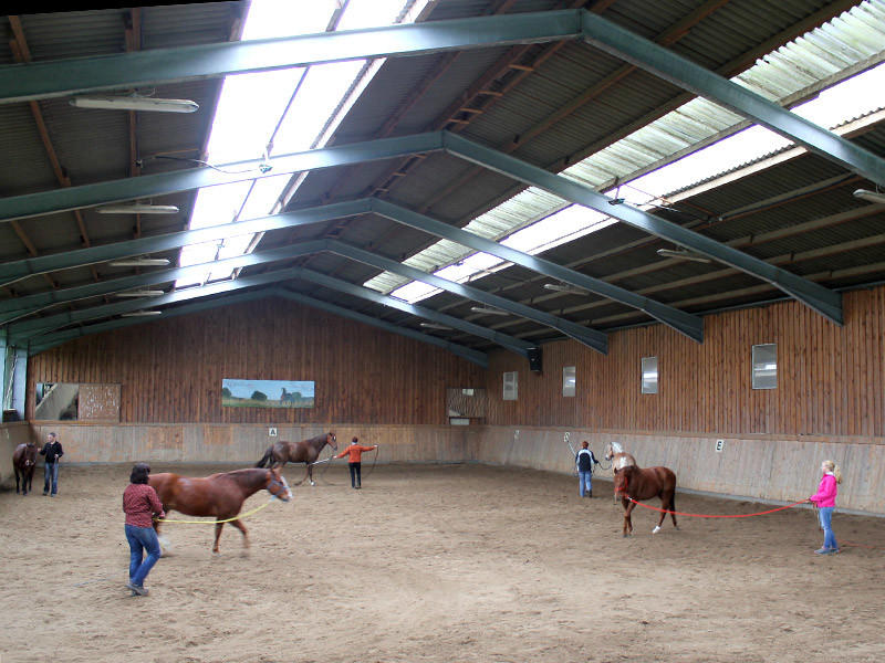 Alternativ können Barhuf-Pferde auch in Laufställen mit 3 bis 8 Pferden pro Gruppe untergebracht werden. Nachts stehen den Laufstall-Pferden Einzelboxen zur Verfügung.