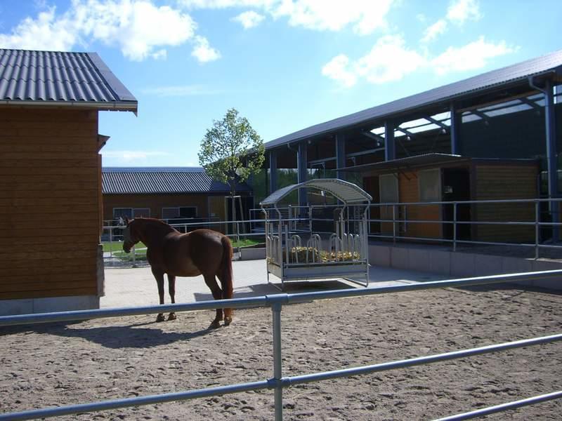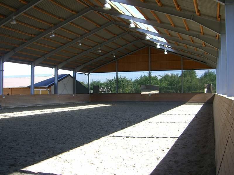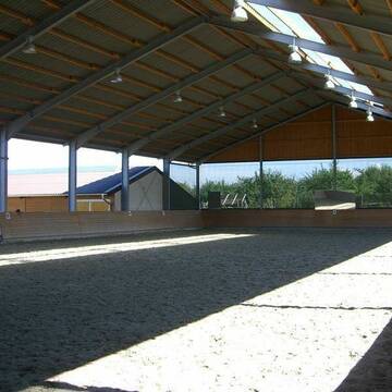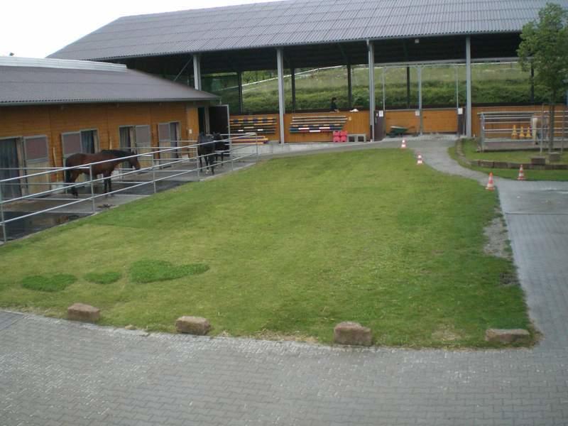 Unser Stall wurde 2003 erbaut. Wir sind ein familiär geführter ruhiger Hof. Wir bieten großzügige Paddock Boxen, eine Innen Box und einen Bewegungsstall / Hit- Aktiv-Stall für 12 Pferde. Im Offenstall werden die Pferde mit Hilfe von einem HIT- Fütterungssystem, artgerecht und nahezu rund um die Uhr mit Rauh und Kraftfutter versorgt. Eine Koppel ist am Bewegungsstall angeschlossen. In der koppelfreien Zeit stehen einem Pferd ca. 100 qm. und bei offener Koppel ca. insgesamt 360 qm zur Verfügung. Bewegung und frische Luft für die Pferde liegen uns sehr am Herzen. Direkt um unseren Stall herum befinden sich viele weitere Koppeln und Allwetterkoppeln. Zu jedem Stallplatz, gehört ein großzügiger Sattelschrank und eine große extra Lager Box. Die Boxenpferde werden 3 mal täglich mit Kraftfutter gefüttert und zwei mal täglich bekommen sie von uns gestopfte Heu Netze. Stroh wird im Offenstall in einer Raufe und in den Boxen in Netzen angeboten. Für Heu Staub Allergiker, können wir sowohl in den Boxen nasses Heu, als auch im Aktiv Stall in einem extra dafür vorgesehenen Heuständer nasses Heu anbieten. Der ganze Stall wird 2 mal täglich ausgemistet. Eingestreut wird gehäckseltes Stroh aus eigener Herstellung. Heu, Stroh und Hafer sind größtenteils aus eigenem Erzeugnis und werden mit sehr viel Liebe und Sorgfalt geerntet. Unsere 20 x 40 Reithalle ist mit einem Ebbe- und Flutboden, ausgestattet und offen. Windschutznetze sorgen dafür, dass bei jedem Wetter bei angenehmem Raumklima für Pferd und Reiter geritten werden kann. Ein separater Longier Zirkel bietet weitere Bewegungsmöglichkeiten. In absehbarer Zeit werden wir unsere Angebot noch durch eine zusätzliche kleine Reit- und Longier Halle ergänzen. Unsere gesamte Anlage, wird nur exklusiv von unseren Einstellern genutzt. Reitunterricht ist möglich. Trotz der Nähe zum Ballungsraum kann man große und kleine Ausritte unternehmen. Ein kleines Reiterstübchen lädt zum Ausklang am Abend ein. Besonders in der kalten und nassen Jahreszeit nutzen viele Einsteller gerne unser Solarium mit Warmluftdusche. Genießen Sie und Ihr Pferd, die angenehme und ruhige Atmosphäre auf unserem Hof.