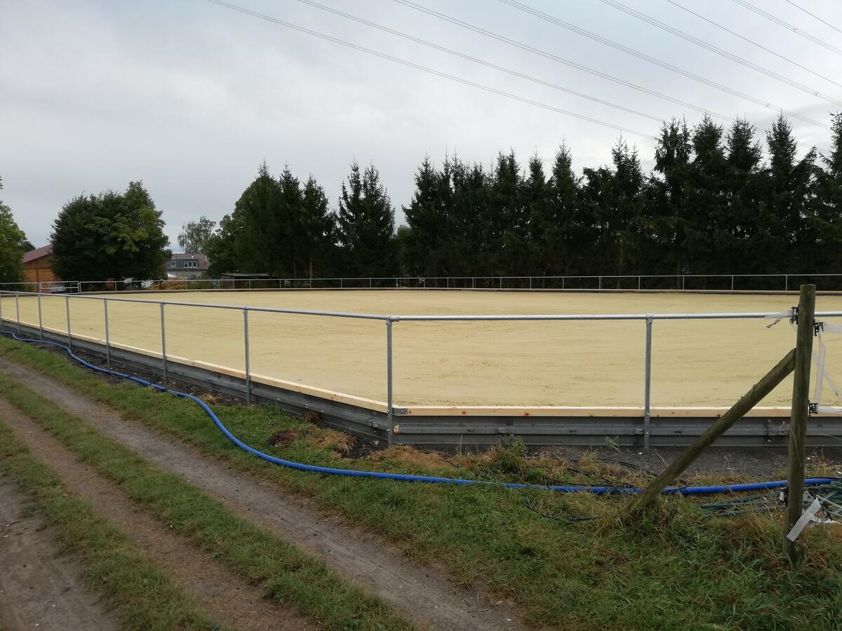 Reithalle 20x40m Terra Tex in 2023 aufgefrischt u. Bewässerung Außenplatz 40x60 in 2020 Unterbau und Umrandung und Beregnung mit Stremmer-Sand 2023/12 aufgefrischt, automatische Bewässerung. 4er-Stall, eigener Putzplatz u. eigene Sattelkammer mit eigener Schubkarre u. Gabel, selbst misten, eigene Sommerkoppel incl. Futterstroh, Heu, Hafer aus eigener Produktion, incl. Mistabfuhr incl. Anlagenbenützung, Hängerparkplatz u. je Partei eigene Koppel Kein Schulbetrieb