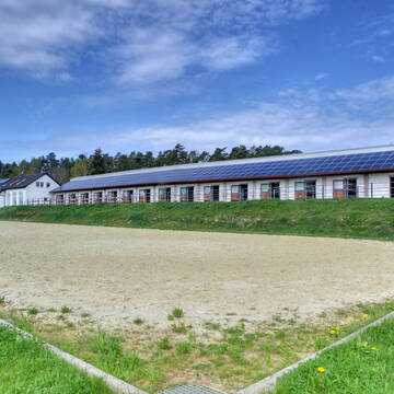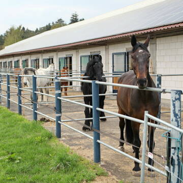 Wir betreuen 40 Pferde und Ponys auf der Anlage. Luftige und große Boxen, täglicher, witterungsbedingter Koppelgang, gutes Futter und bedarfsgerechte Fütterung, Medikamentengabe, individuelle Betreuung der Pferde, Solarium, eine gepflegte, sonnendurchflutete Halle (40 x 20), ein überdachter Roundpen, ein großer Sandplatz (60 x 20m), ein herrliches Ausreitgelände, ein ruhiges Stallklima und ein freundlicher Umgang miteinander ist bei uns eine Selbstverständlichkeit und lässt keine Reiterwünsche offen. Sie können sich in aller Ruhe um die Ausbildung ihres Pferdes kümmern und ihre Freizeit ohne Stress verbringen. Qualifiziertes und gut bezahltes Fachpersonal ist für uns eine Selbstverständlichkeit!