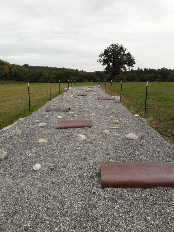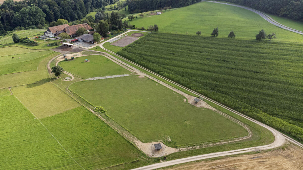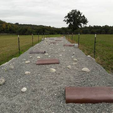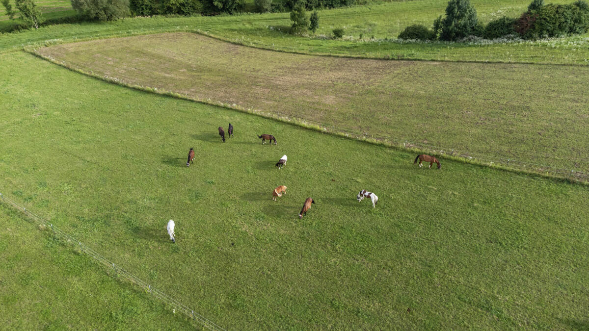 Wir bieten der Herde eine großflächige Stall-/Paddockanlage mit dauerhaftem Zugang zum weitläufigen Paddock Trail von rund 500m Länge. Neben verschiedenen Beschäftigungsstationen (Sandbad, Steinweg...) steht den Pferden/Kleinpferden ein großer Innenbereich mit Krankenbox, 24 Stunden Grundfutter und viel Weideland (insgesamt 7 ha) zur Verfügung.