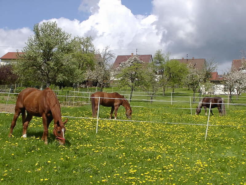 Die individuelle Pferdehaltung mit Reitplatz, weitläufigen Weiden, befestigten Paddocks, Matschkoppeln, Graspaddocks, Wasch- und Putzplatz sowie Solarium eignen sich auch bestens für Ruhestandspferde / Vorruheständler und Erholungspferde.