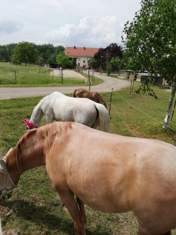 Allgemeine Beschreibung: Offenstall mit viel Sommer-Weide. Von November bis Februar stets noch ein großzügiger Auslauf . Wir haben hier zumeist 2-er Gruppen. Unsere Pferde stehen jeweils in einer festen Stallgruppe mit Dauer-Auslauf bzw. Weide. Unser überschaubarer Pferdehof hat aktuell insgesamt 14 Pferde mit ca. 20.000 m² Weidefläche im Zaun. Sandreitplatz 20 x 40 m bei Staub beregnet / am Abend beleuchtet. Roundpen (Sand) mit 18 m Durchmesser, Licht. Beheizter Umkleideraum, Sattelkammern mit Schränken, Waschplatz, frostsichere Tränken. Gute Stallgemeinschaft mit gutem Gelände zum Ausreiten. Stellplätze für Pferdeanhänger sind möglich. Wir stellen neben dem Stall und der Weide das gesamte Heu und auf Wunsch Stroh zur Verfügung. Plätze können als Selbstversorger angeboten werden. In Ausnahmen Vollpension. Wir freuen uns auf Ihre Anfrage, Ihren Besuch und ihr Interesse! Es gibt auf der Weide 2 geräumige Unterstände mit großen Paddock für reichlich Auslauf. Die Weide kann zeitlich variabel geöffnet werden.