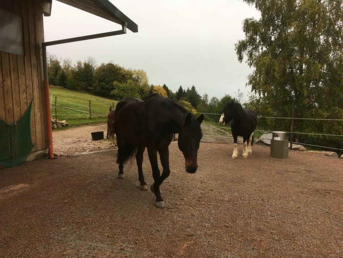 In unserem 2014 erbauten, durch die LAG (Laufstall-Arbeits-Gemeinschaft für artgerechte Pferdehaltung (Deutschland) e.V.) mit 6 goldenen Sternen und 1 silbernem Stern ausgezeichnet Gruppenlaufstall/Aktivstall auf dem Malaihof im Naturpark Südschwarzwald, bieten wir den Pferden eine artgerechte Haltung mit viel Auslauf, ca. 5ha großzügigen Weiden (nicht Steil) und mehreren Futterplätzen. In der Weidesaison legen unsere Pferde auf dem Trail bis zu 1km Wegstrecke zurück um wieder an die Wassertränke zu gelangen. Die maximal Anzahl beschränkt sich aktuell auf 6 Pferde. Den Pferden steht ein grosszügiges neu erbautes Stallgebäude mit 100qm Liege-/Ruhefläche sowie eine vollüberdachte Aussenliegefläche 25qm und ein direkt angeschlossener 400qm grosser Laufhof komplett gedeckt mit Paddockplatten, großzügig Überdacht zur Verfügung. Die Sommer-Weiden sowie die Winterweide sind direkt von Stall-/Laufhof für die Pferde erreichbar. Wegen der Höhenlage auch gut geeignet für Ekzemerpferde. Gerne nehmen wir auch Rentnerpferde die einen schönen Lebensabend haben sollen, Pferde die nicht mehr reitbar sind oder auch Jungpferde zur Aufzucht auf ! Das Gelände und die Reitmöglichkeiten eignen sich ideal für Wander- und Distanzreiter.
