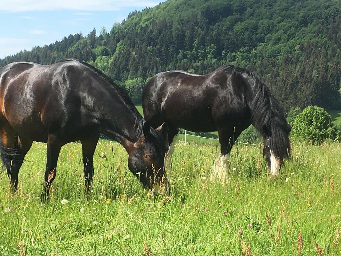 Unsere Weiden sind uns wichtig deshalb legen viel Wert darauf das diese regelmässig gepflegt, abgeschleppt, nachgesät und gemulcht.