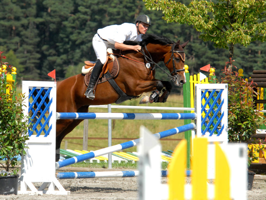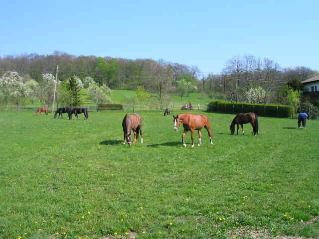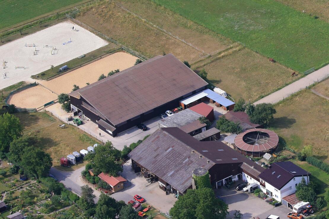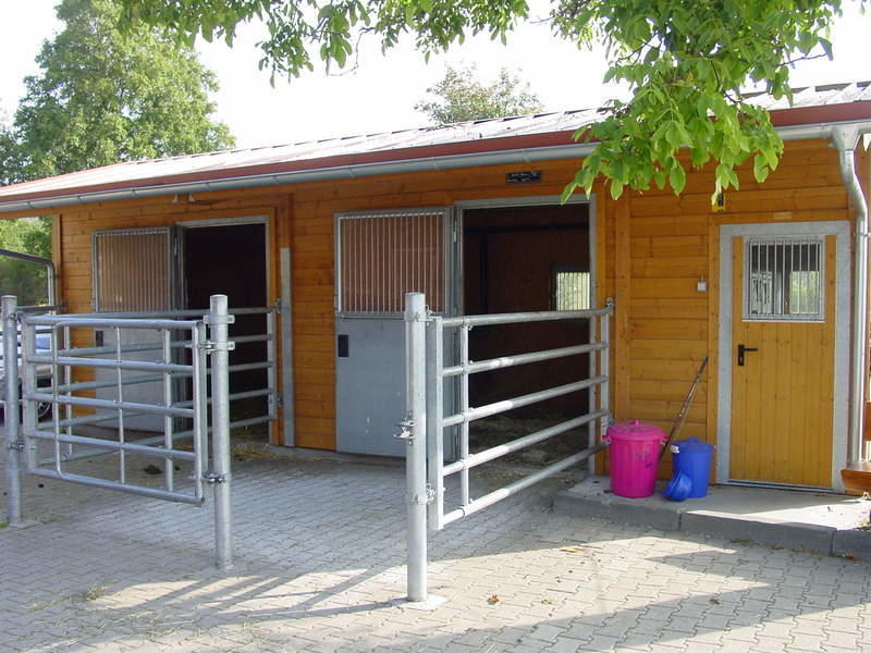 gepflegte Reitanlage, Reithalle, Außenplatz 20 x 40 und Springplatz 30 x 60, Longierhalle 18 m Durchmesser, Winterauslauf, Kraft-Führanlage mit überdachtem Hufschlag, Laufband, mit öffentl. Verkehrsmittel erreichbar, schönes Ausreitgelände, Waldrandlage mit großen, gepflegten Koppeln. Dressur und Springausbildung von Reiter und Pferd durch anerkannten Pferdewirtschaftsmeister, auf Wunsch Turniervorstellung möglich. Akupunkturbehandlungen.