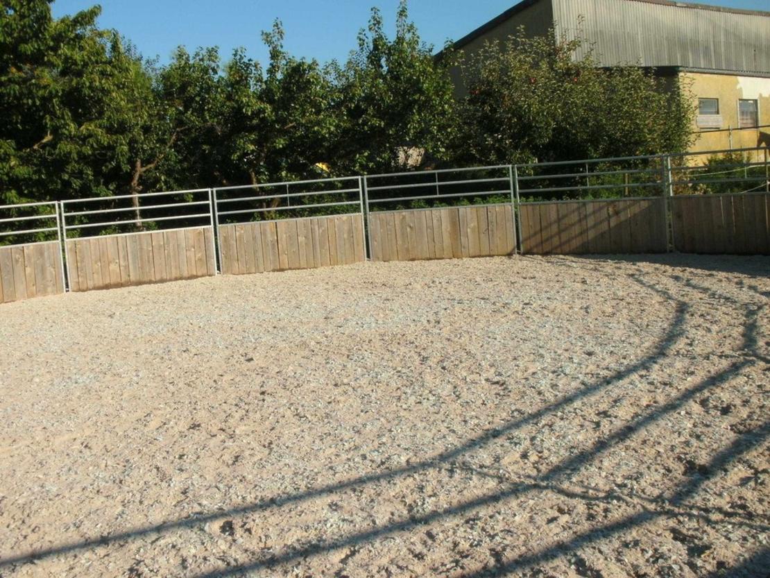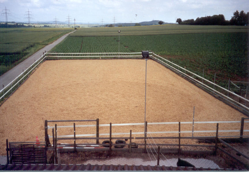 Zu Ausstattung gehören ein Reitplatz 20x40m und ein Roundpen mit 18mØ, Waschplatz, kleiner Allwetterplatz.