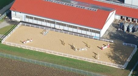 Reitanlage wurde 2006 in Betrieb genommen und liegt sehr verkehrsgünstig in reizvoller Lage mit unbegrenztem Ausreitgelände direkt ab Hof . Die Reithalle hat die Maße 20 x 40 m, der Reitplatz ist 20 x 60 m groß. Sowohl eine Longierhalle als auch ein Horsegym Laufband stehen zur Verfügung. Alle Tretschichten sind neuwertige Terra Tex Böden. Jedem Einsteller steht in der beheizten Sattelkammer ein abschliessbarer Schrank zur Verfügung, ebenso ist ein gemütliches Reiterstübchen vorhanden. Alle Boxen haben beheizte Tränken, sind mit Gummimatten ausgelegt. Koppeln können im Sommerhalbjahr genutzt werden. 2024 wurden 3 Allwetter-Sandbewegungs-Paddocks errichtet. Es wird 3 x täglich gemistet, 3 x täglich Kraft- und Rauhfutter gefüttert. Bitte Anfragen nur telefonisch unter [für Telefonnummer anmelden ], nicht per Mail. Vielen Dank