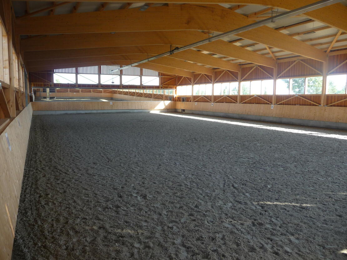 Wir bieten Ihnen eine gepflegte Reitanlage mit anspruchsvoller pferdegerechter Pensionshaltung und modernen Bedingungen für alle Sparten der Reiterei - Sie haben die Wahl zwischen Innenboxen mit indirektem Paddock und klassischen großen Paddockboxen. Für Training und Pflege stehen Ihnen eine Reithalle (20x40), ein Aussenplatz (33x60), ein Longierplatz, ein Laufband, sowie Sand-Paddocks mit Heuraufen, Koppeln und Anhängerstellplätze zur Verfügung. Neuerung: Voraussichtlich ab Oktober '25 wird eine neue 20m-Führanlage für 8 Pferde zur Verfügung stehen. ...weitere Einblicke und Details über www.golden-lope-ranch.de