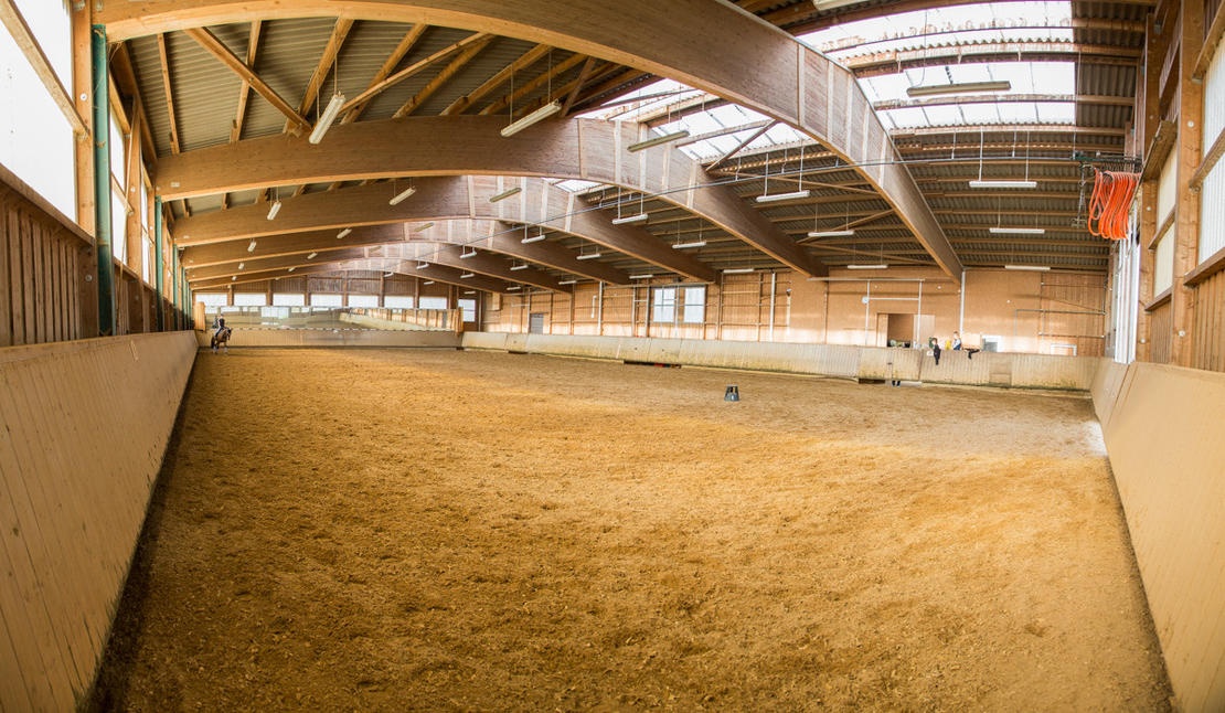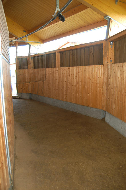 Großzügige Paddock-Boxen in zwei hellen, luftigen Stalltrakten die an die Reithalle 20x40 m grenzen. Das Dressurviereck außen 20x60 m kann beleuchtet werden. Halle und Außenplatz mit terra-tex Belag. Überdachter Longierzirkel mit Führanlage. Koppeln befinden sich im direkten Anschluß an die Reitanlage. Befestigte Allwetter-Paddocks die bei jeder Witterung genutzt werden können. Derzeit ist eine große Pferdebox ohne Paddock frei.