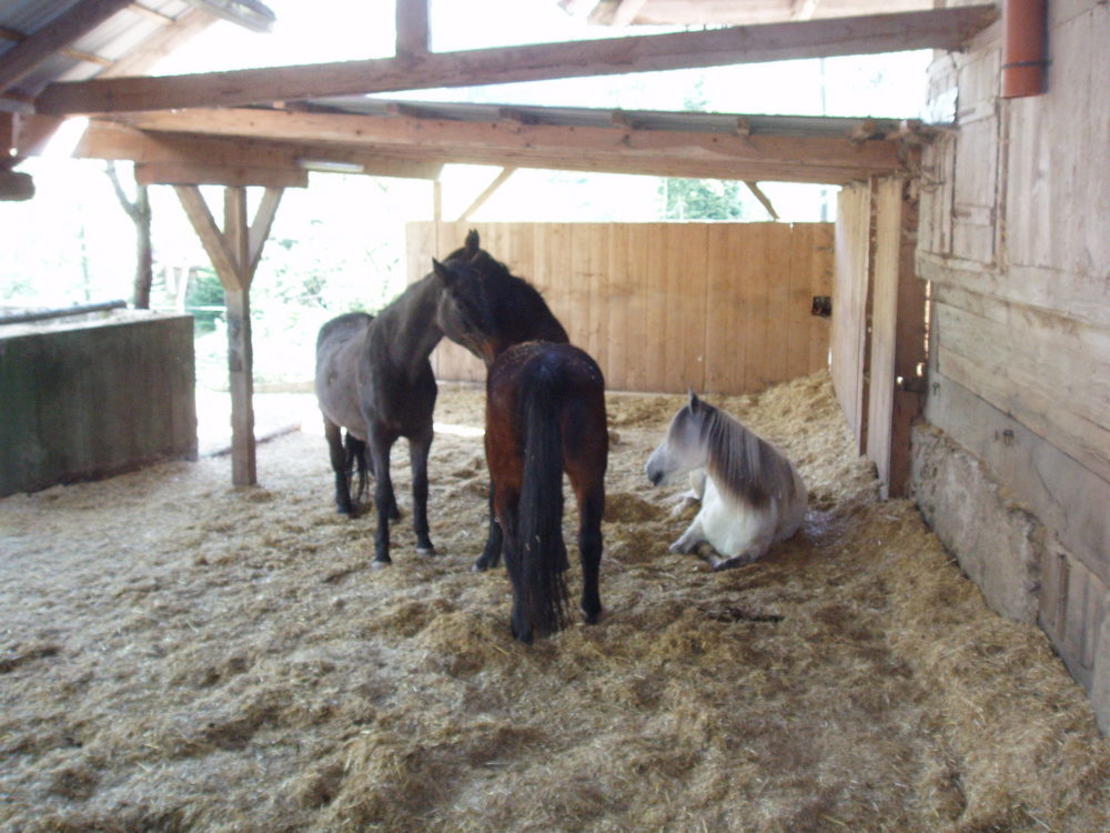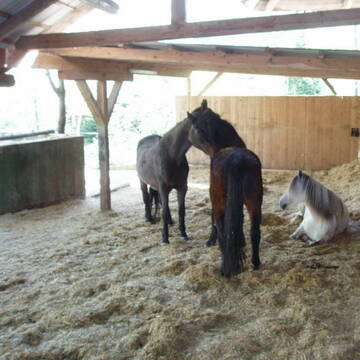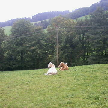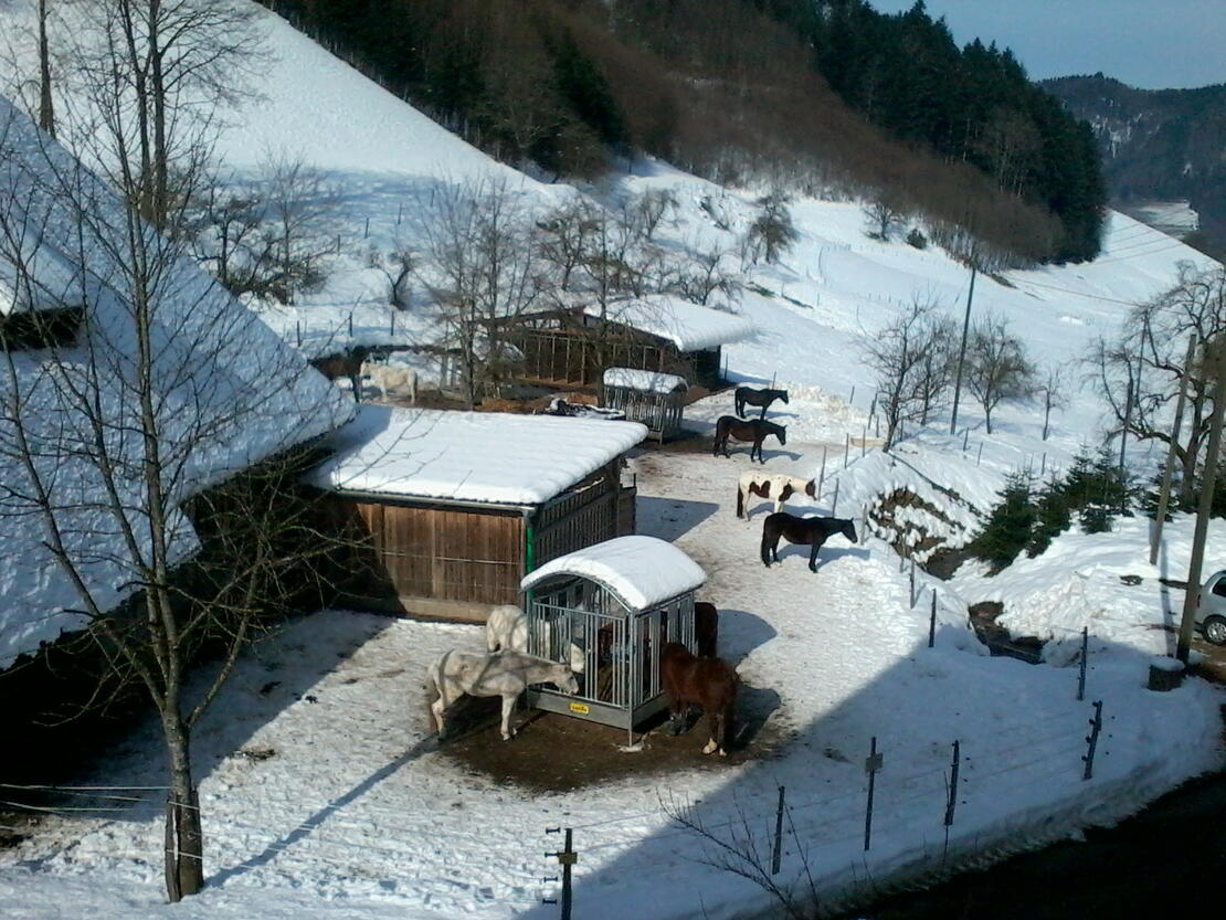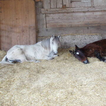 Sie wollen endlich nicht mehr zu Ihrem Pferd müssen, um sicher zu sein, daß es ihm gut geht und es zuverlässig versorgt ist? Aber sie wollen jederzeit zu Ihrem Pferd dürfen? Dann sind sie bei uns richtig: Wir haben große und langjährige Erfahrung in der Haltung von Pferden, insbesondere von Senioren und Heustauballergikern. Wir betreiben einen kleinen, familären, von der LAG mit 7 Goldsternen ausgezeichneten Offenstall. Bei uns lebt eine altersgemischte Stutenherde (max. 13 Pferde). Im Sommer können die Pferde wählen, ob sie sich auf den Bergweiden, oder im Offenstall (mit befestigtem Auslauf) aufhalten wollen. Heustauballergiker willkommen: wir füttern nasses Heu und Heulage. Die Pferde haben sommers wie winters immer freien Zugang zum Heu und/oder Gras. Die 4 voneinander getrennten Liegeflächen sind mit Sagustu Elastik Verbundpflastermatten befestigt, zusätzlich mit Stroh eingestreut und werden 2xtäglich gemistet. Individuelle Fütterung, Medikamentengabe und tägliche Kontrolle der Pferde sind selbstverständlich. Wenn Ihre Stute in einer ruhigen Herde ihren Lebensabend verbringen soll, dann ist sie bei uns richtig. Aber auch Reitpferde sind herzlich willkommen.