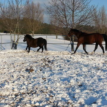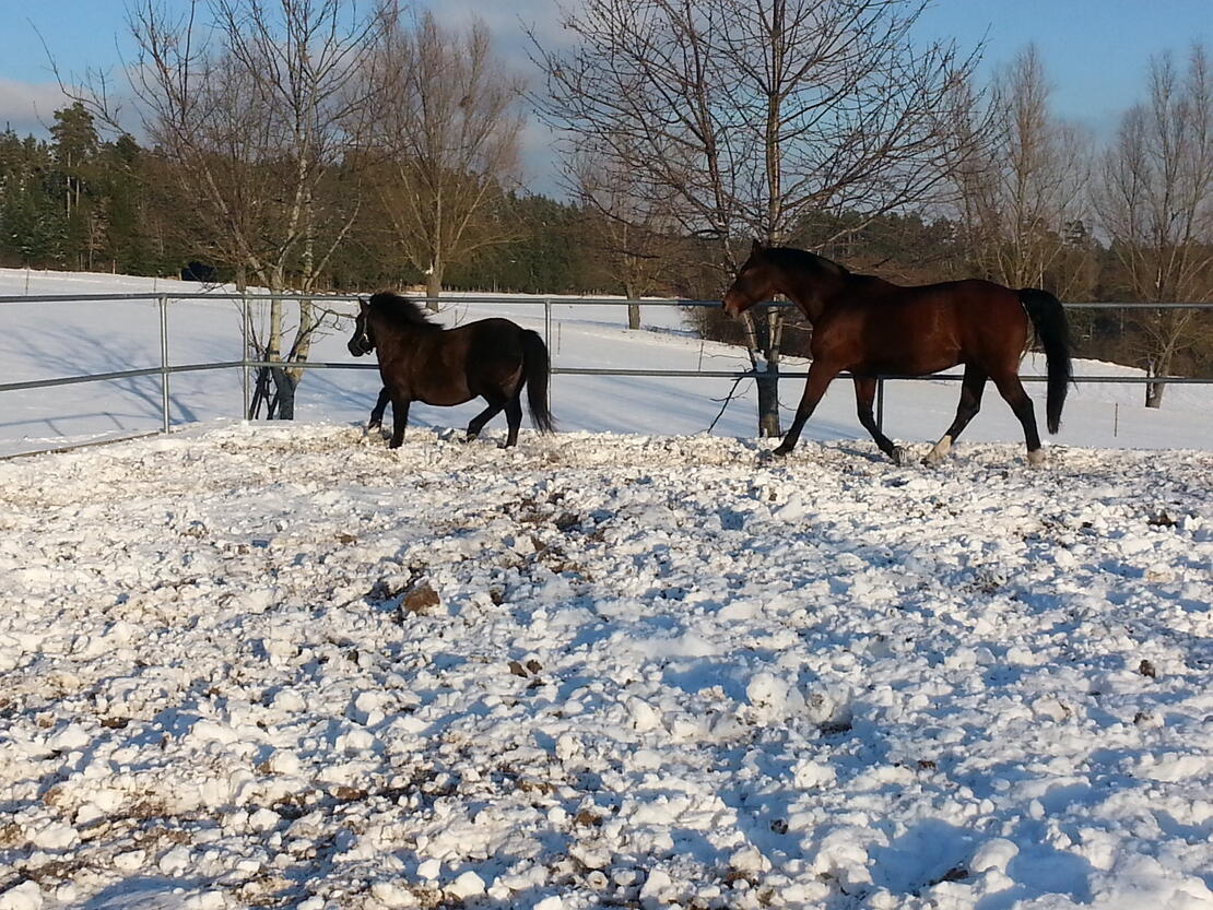 Winterkoppeln bei gefrorenem Boden, sowie trockenem Boden zur Verfügung, ausreichender Bewegung im Alltag wird hier vorausgesetzt.
