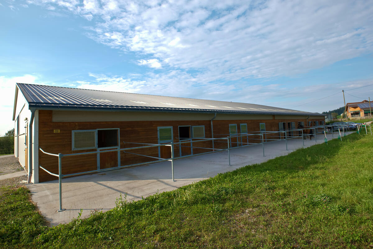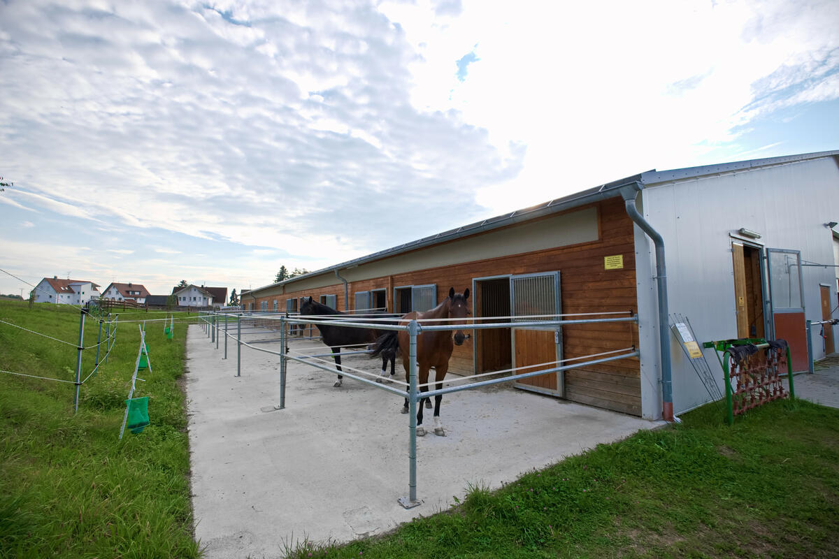 Große Paddockboxen, ein Solarium, eine helle große Reithalle sowie traumhaftes Ausreitgelände sind ebenfalls vorhanden.