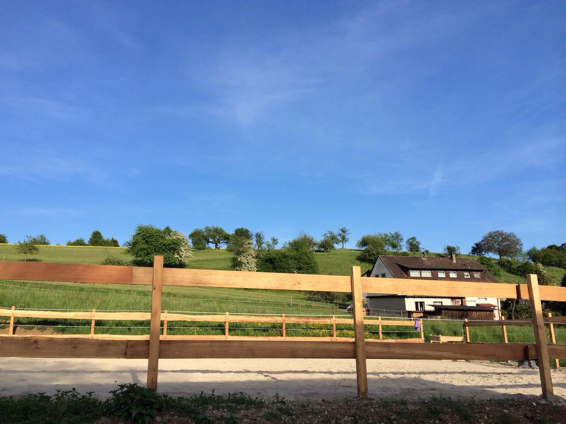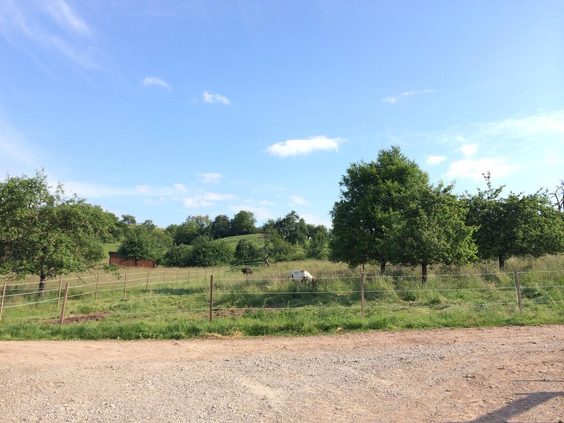 Inmitten der idyllischen Wiesen und Wälder des Dinkelbergs liegt unser Gestüt mit Trainings- und Pensionsstall.