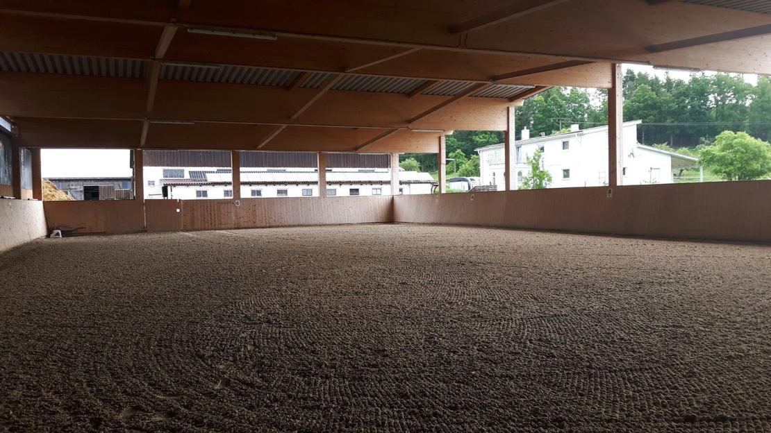 Freie Benutzung Reitplatz mit Flutlicht, Longier Zirkel und Reithalle (20x40 m).