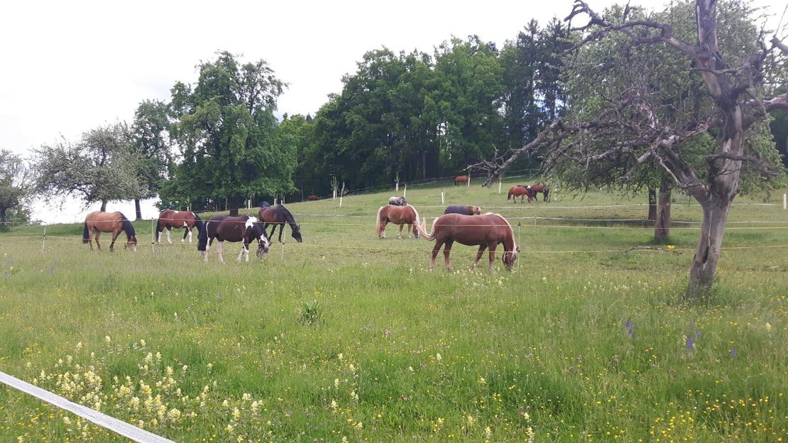 Ganzjähriger Weidegang (Pferde werden von uns auf die Weide gelassen und wieder in den Stall gebracht) auf großen Weiden, auch bei schlechtem Wetter. Wir sind momentan belegt.