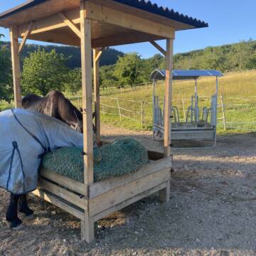 150 qm großer Offenstall mit Auslauf. Wir bieten: