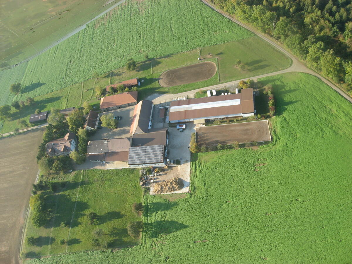 Wir sind ein landwirtschaftlicher Familienbetrieb mit über 30 Jahren Erfahrung in der Pensionspferdehaltung. Die idyllisch gelegene Reitanlage befindet sich außerhalb der Ortschaft auf unserem Hof. Die Zwei Stallgebäude verfügen jeweils über geräumige Fensterboxen. Es wird sowohl Vollpension (7 Tage Misten, 2x Täglich Kraftfutter, Heuraufe) als auch Selbstversorger (Heu, Stroh und Kraftfutter beigestellt, Futtergabe morgens) angeboten. Das ganze Umland ist ein reizvolles Ausreitgelände weitab von verkehrsreichen Straßen. Die Anlage verfügt über Reithalle und Außenplatz. Gegen Aufpreis stehen ganzjährig Sandpaddocks zur Verfügung, sowie im Sommerhalbjahr Weideflächen. Weitere Ausstattung: Solarium, Außenwaschplatz, Reiterstübchen, Sattelkammer. Neuer Hallenboden Mai 2023 eingebaut, Aussenplatz ebenfalls Mai 2023 überarbeitet. Beregnungsanlage auf beiden Plätzen. Paddockboxen im Vollpensionsstall. Heu und Stroh aus eigener Produktion.