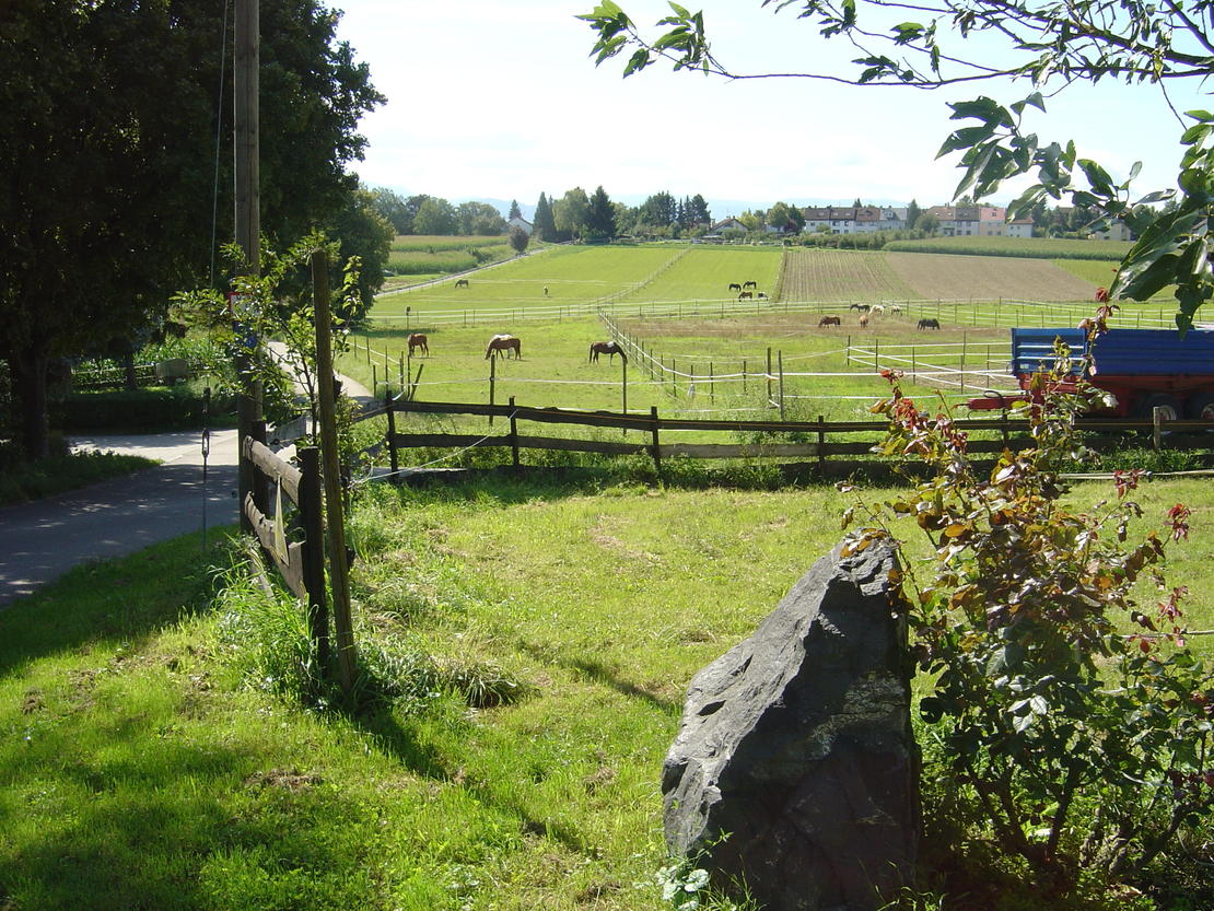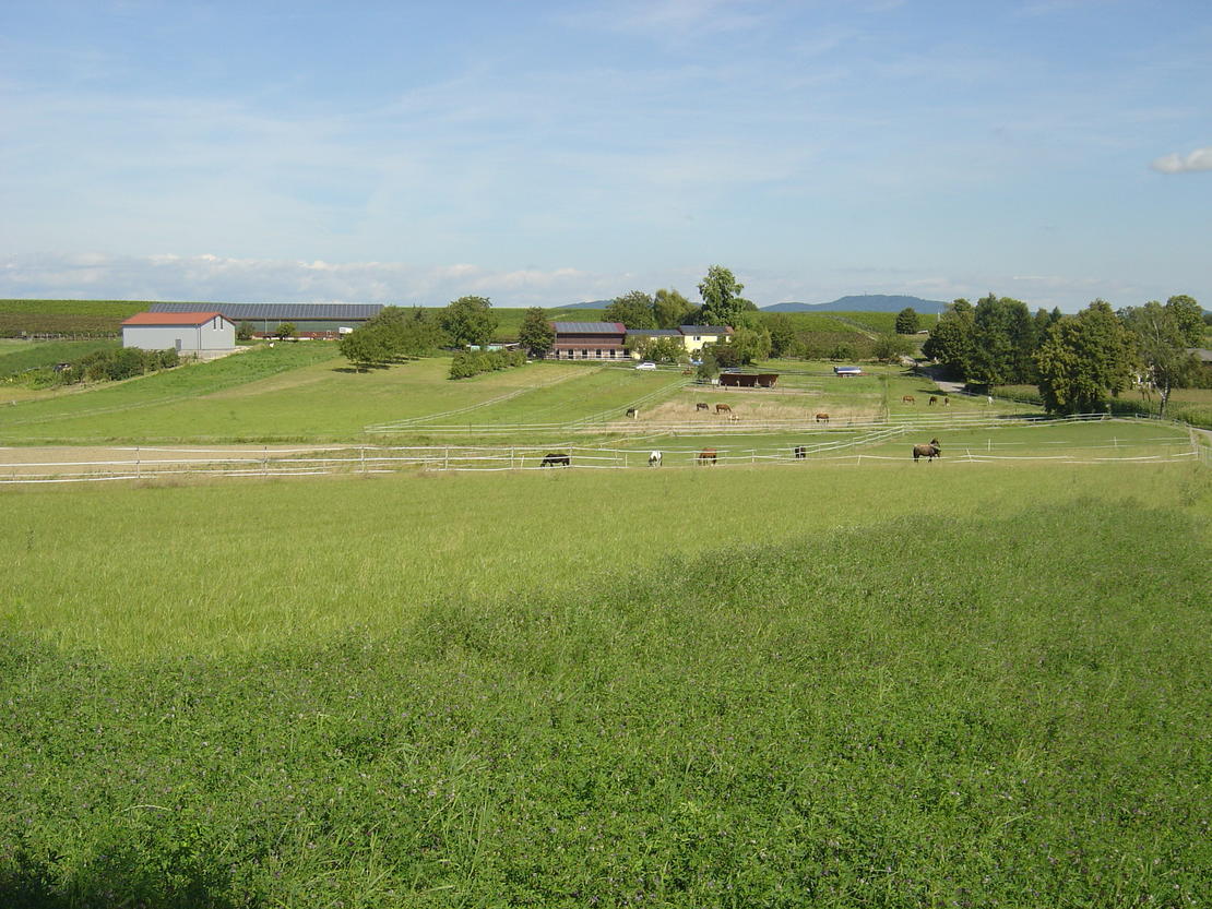 Unser Pensionsstall liegt ca. 8 km westlich von Freiburg direkt am Tuniberg, mit sehr schönem Ausreitgelände in den Weinbergen. Wir bieten Vollpension mit täglichem Weidegang bzw. Auslauf, in kleiner Gruppenhaltung. Außerdem ist eine neue Reithalle mit Stuckenberger-Reitsand eine Longierhalle und ein Pferde-Solarium vorhanden.