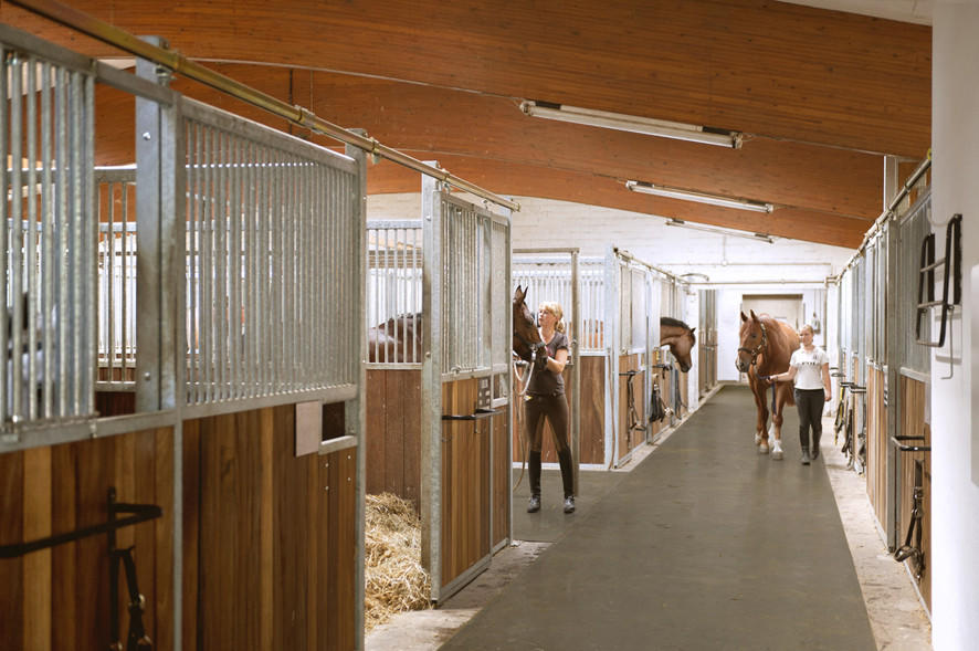 Auf der Anlage befinden sich zwei Ställe mit 42 Pferdeboxen. Nach Umbau des großen Stalles 2011 sind die Boxen jetzt auf über 12 m² vergrößert worden. Zudem haben alle Außenboxen Fenster und alle Boxen Luken zur Stallgasse. Mehrere Putzplätze sowie zwei beheizbare Sattelkammern und ein Solarium bieten auch im Winter Komfort.