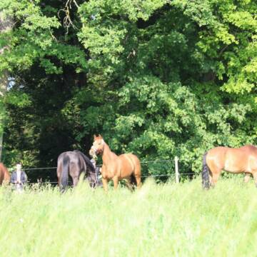 Aktuell haben wir eine große Paddockbox sowie schöne Fenster-Boxen mit einer Größe von 3,50 m x 3,50 m. Reithalle, Sandplatz und ganzjährig nutzbare Matschpaddocks stehen zur Verfügung. Für die Pferde gibt es ein Laufband und ein Solarium. Zudem gibt es eine beheizte Sattelkammer und ein Reiterstübchen.