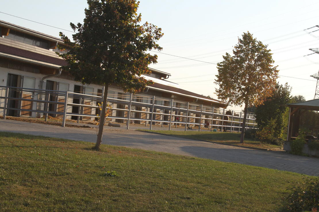 Auf unserer Anlage befinden sich 4 Boxen , 7 Außenboxen mit angegliedertem Laufhof u. 31 Paddockboxen