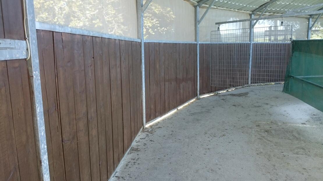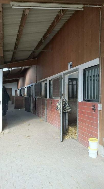 Schöne helle Paddockboxen mit befestigem Auslauf direkt an der Reithalle frei, sowie helle luftige Außenboxen.
