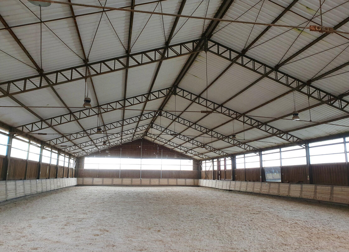 - Reithalle (20 x 45m) mit Fleece/Quarzsand