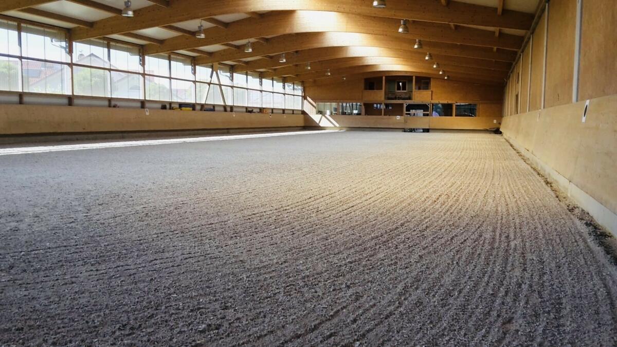 - Helle Reithalle (20m x 60m) mit Terra-Tex-Reitboden