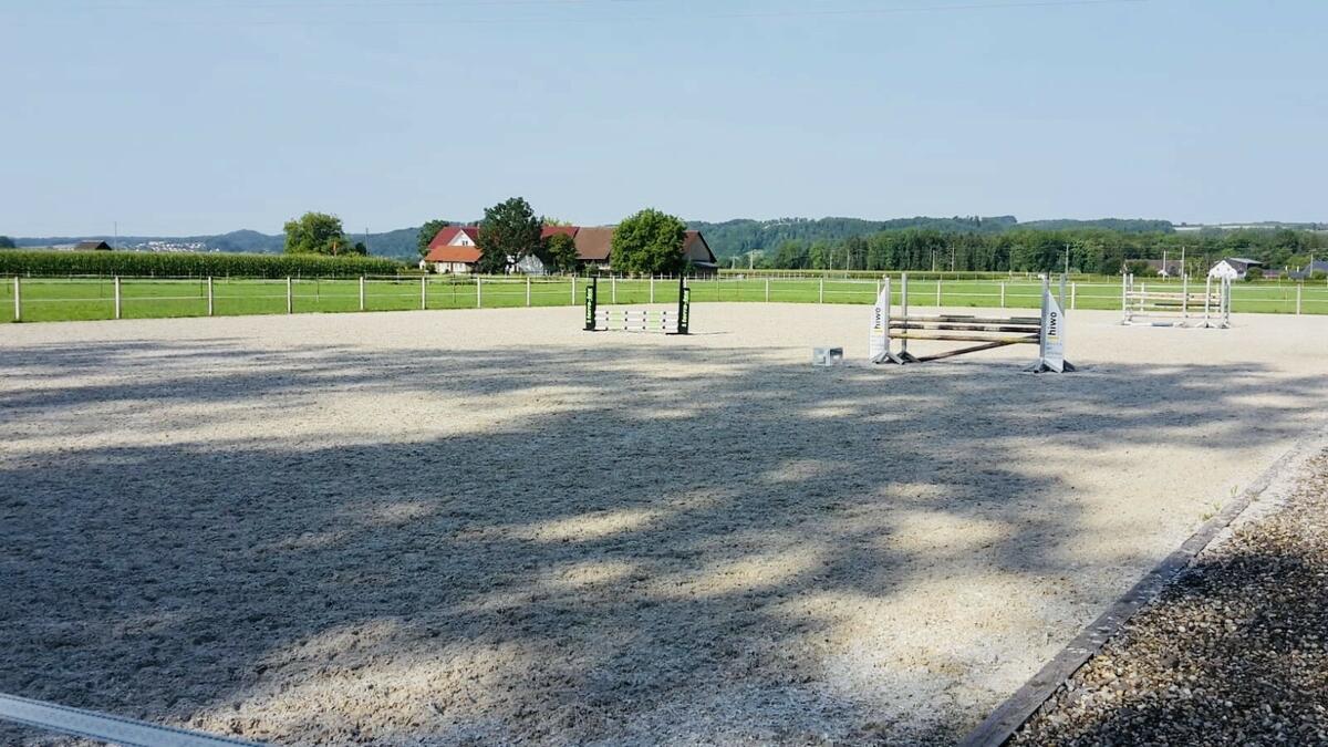 - Reit-, Freilauf- und Longierplatz (20m x 40m) mit Sandboden