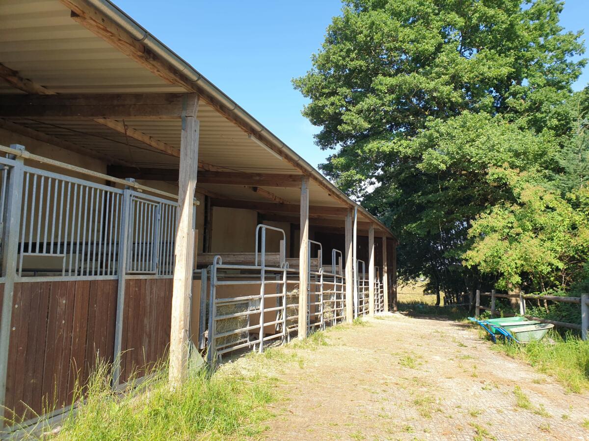 - Außenboxen mit 15 m²: 4 x tägliche Heufütterung, 2 x täglich Kraft- / Mineralfuttergabe, 6 h Auslauf täglich nahezu 365 Tage im Jahr