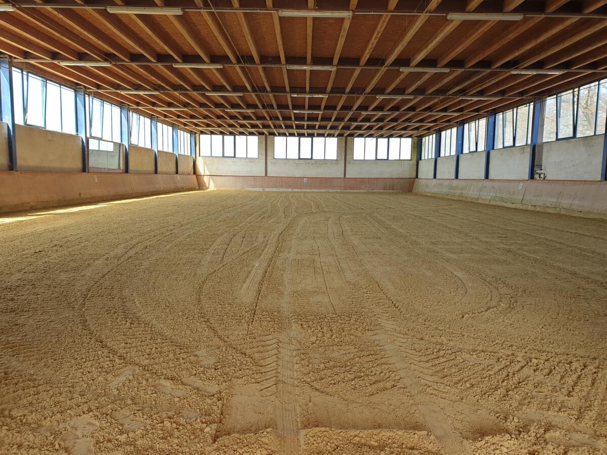 - 2 Reithallen: große Halle mit 40 x 20 m und kleine Halle mit 12 x 25 m mit professionellem Sandboden und Bewässerungsanlage