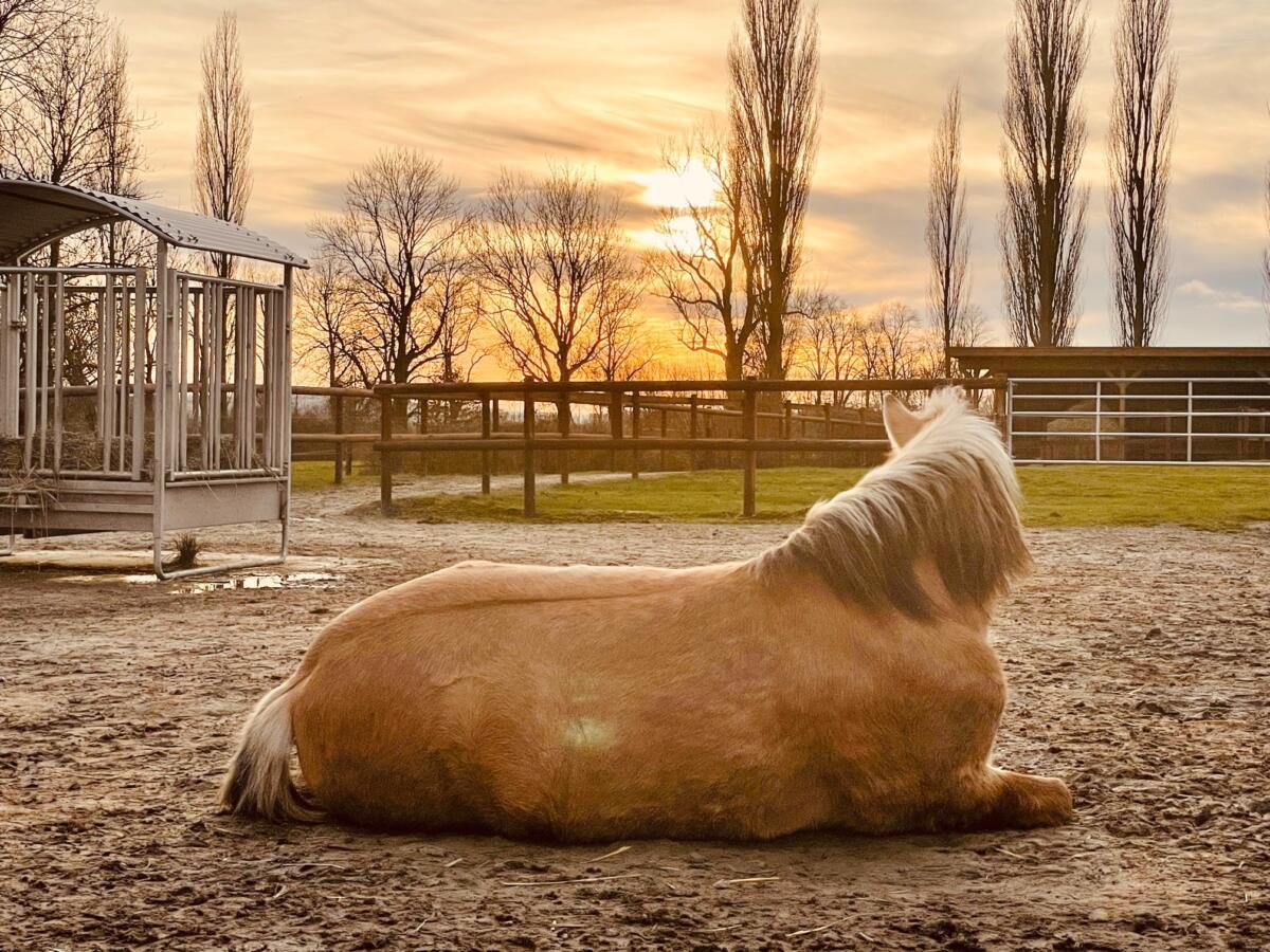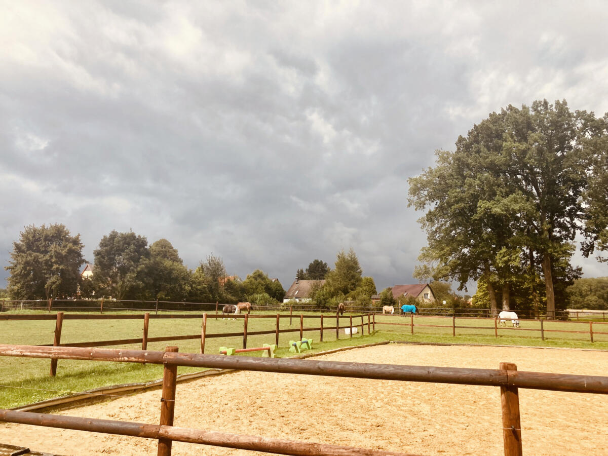 Es gibt … 24h Heu / Liegestall /2 Unterstände / befestigter Paddock / Weide im Sommer / Reitplatz ! Gerne zeigen wir alles vor Ort!