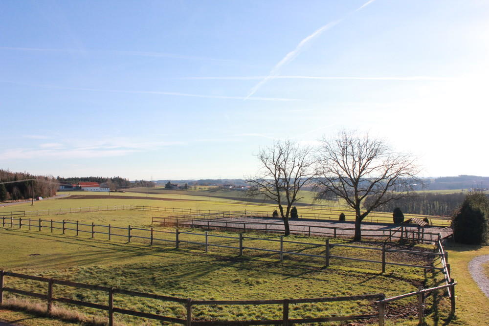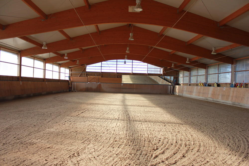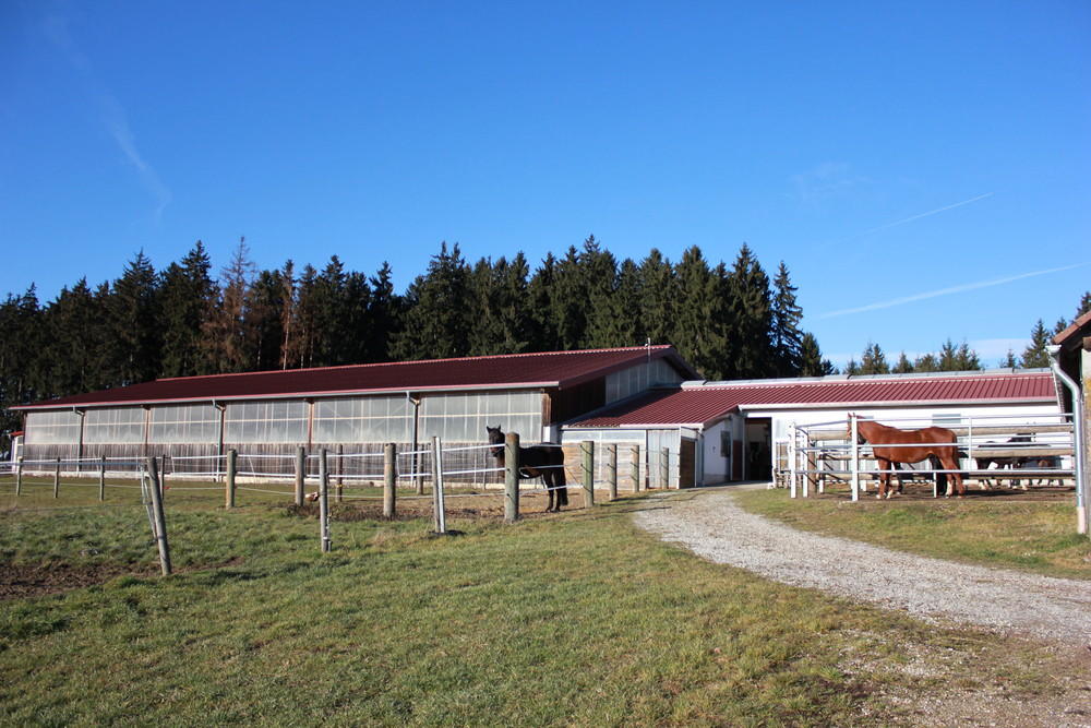 Es ist eine Reithalle 20x40 m mit neuem Sand-Textilgemisch-Belag vorhanden, sowie ein Allwetteraußenplatz ebenfalls 20x40 m groß. Solarium, Sattelkammer, Waschmaschine und gemütliches Reiterstüberl sind ebenfalls vorhanden. Hängerstellplatz ist selbstverständlich. Täglicher Weidegang auf großzügigen Koppeln ist inbegriffen. Pferde in Innenboxen kommen in den Wintermonaten auch auf befestigte Einzelpaddocks.