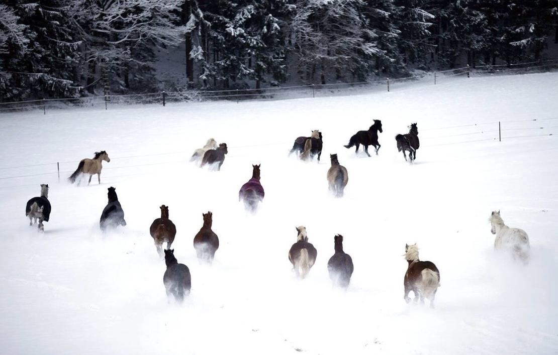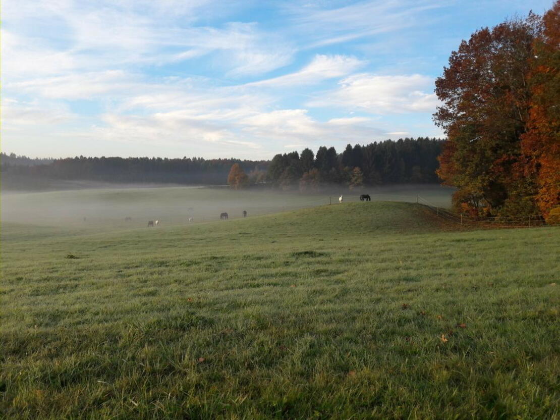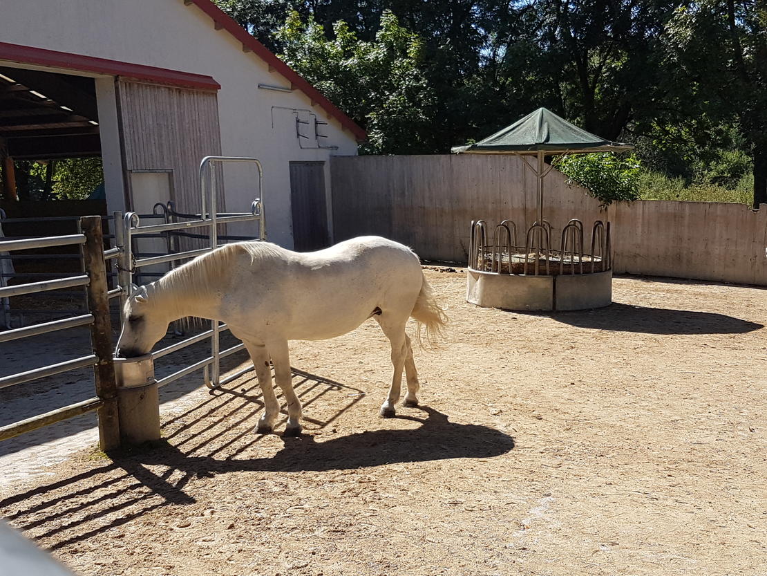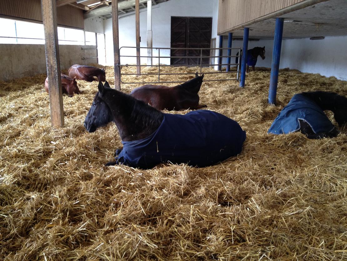 Seit dem Umbau des Haldenhofes im Jahr 1995 zum Offenstall / Bewegungsstall können wir nun auf fast 30 Jahre Erfahrung in der artgerechten Pferdehaltung zurückblicken. Die Lage des Haldenhofes am westlichen Ortsrand von Aystetten ermöglicht eine Arrondierung der Koppelflächen fast um den ganzen Hof herum. Unsere Pferde bewegen sich in zwei Herden, einer reinen Wallachherde und einer gemischten Herde. Pro Herde gibt es 3 Koppeln mit jeweils ca. 3ha Fläche. Die Koppeln werden abwechselnd genutzt, mal als Pferdeweiden, mal als Heuwiesen. Fast ein Drittel des Jahres bleibt jede Koppel geschont. So können die Pferde auch im Winter raus auf die Weide. Dank noch zusätzlicher Grünflächen können wir den größten Teil unseres Pferdeheus selbst produzieren. Unsere weitläufigen, mit unterschiedlichen Untergründen befestigten Auslaufbereiche und die mit Stroh eingestreuten großzügigen Liegehallen bieten ausreichend Platz für ca. 25 Pferde pro Herde. Heu wird je Herde in drei großen Rundraufen ad libitum angeboten. Heunetze über den Raufen verlängern die Beschäftigungs- und Fresszeiten. Ihre individuelle Kraftfutterration (zwei verschiedene Sorten) können sich die Pferde an einer computergesteuerten Abrufstation über den Tag verteilt selbst abholen. Wasser gibts an pro Herde 4 beheizten Tränken. Spielen, Ruhen, Fressen, Trinken: die Aufteilung der Flächen in verschiedene Lebensbereiche ermöglicht den Pferden einen Tagesablauf ihren individuellen Bedürfnissen entsprechend im Wechsel zwischen Ruhe und Bewegung. Für kranke Pferde haben wir 4 Aussenboxen in einem separaten Stallgebäude, hier können auch tierärztliche Behandlungen durchgeführt werden. Windschutznetze an drei Seiten unserer mit ca. 25m x 55m sehr großzügigen Reithalle bewirken in der Halle ganzjährig ein helles und luftiges Klima. Der mit Flutlicht ausgestattete Außenreitplatz (15m x 30m) kann ganzjährig beritten werden. Dank der Ortsrandlage können die Reiter direkt vom Hof ins Gelände reiten. Wer nur eine "kleine Runde" drehen will , kann den eigens dafür angelegten, ca. 5 km langen Reitweg rund um die Koppeln nehmen. Ausrüstung, Sättel und Decken sind in beheizten und abschliessbaren Sattelkammern untergebracht, außerdem gibt es Platz für zusätzliche Futtertonnen etc. In der großen Waschbox für beide Herden gibt es ganzjährig warmes Wasser, hier ist auch ein Pferdesolarium. Für die Reiter haben wir eine gemütliche, kleine Reiterstube/Teeküche mit Terrasse eingerichtet, von der aus man wunderbar den Pferden zusehen kann. Es gibt zwei, nach Geschlechtern getrennte Toilettenräume. Für dieses Jahr sind nun alle Plätze belegt, wer Interesse hat, kann sich aber gerne trotzdem vormerken lassen.