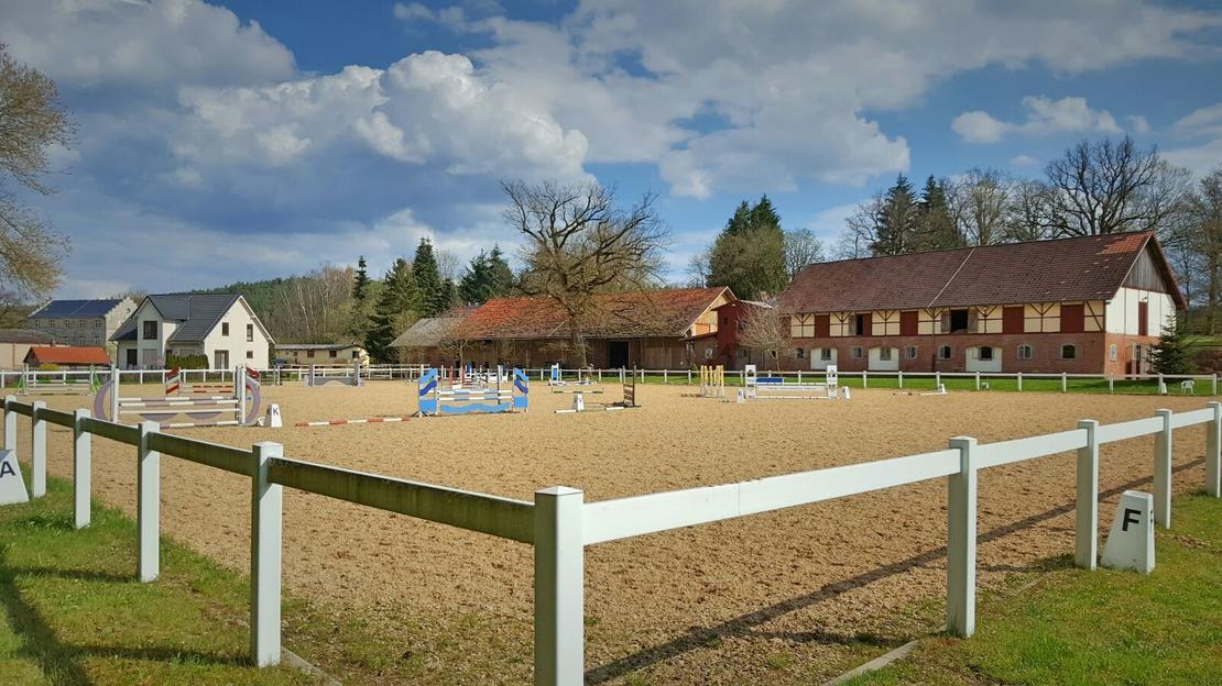 Neue Koppeln (Gruppen oder Einzeln), ausgewiesene Reitwege für Geländeausritte Flutlichtanlage, Waschplätze, Solarium, Laufband, Keine festen Stallzeiten Optional qualifizierter Springunterricht