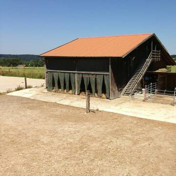 Offenstall , beheiztes Tränkebecken, Ruheraum mit Strohmatte ca 100m2 und Fressraum ca50m2