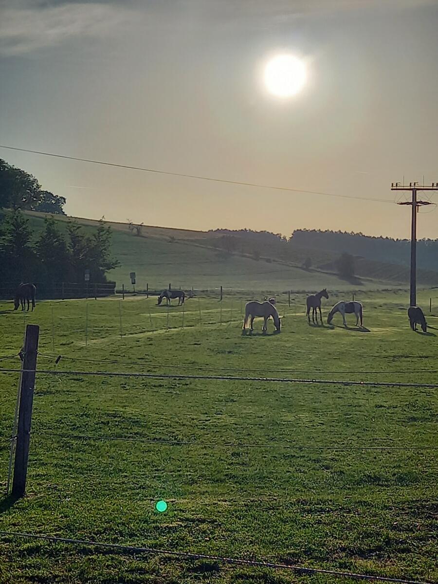 Untertags laufen die Pferde auf einem befestigten matschfreiem Trail/Auslauf. (ODER auf der Sommerkoppel)