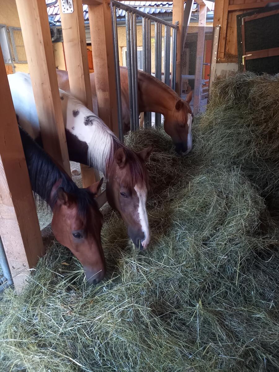 Das Wohl der Pferde steht bei uns an aller erster Stelle..... NEU Wir haben unseren Stall auf bedampftes Heu ad libitum!! für alle eingestellten Pferde umgestellt. Bedamptes Heu ist frei von Staub, Schimmelsporen und Bakterien. Nicht nur für Allergiker-Pferde geeignet, auch bestens geeignet für die Gesunderhaltung unserer geliebten Pferde !!!!