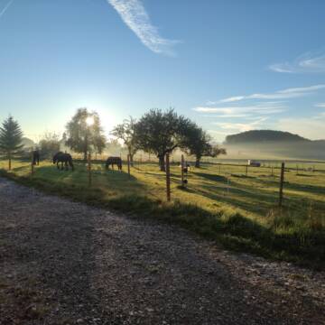 Wir haben Sommer wie Winter die Möglichkeit die Pferde auf die Koppel zu lassen Durch den neugebauten Trail haben die Pferde die Möglichkeit sich den ganzen Tag zu bewegen Im Sommer haben wir große Koppeln mit Schattenplätze und wenn das Wetter mitspielt mit Nachtkoppel Die Pferde dürfen sich frei bewegen da unsere koppeln fast immer offen sind