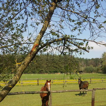 Wir sind ein moderner, familiär geführter Pensionspferdestall in idyllischer Lage, eingesäumt von 4 Ha Weideland, das zur Koppelnutzung zur Verfügung steht. Die Weiden sind sowohl zur Herdenhaltung, als auch für Einzelbelegung ausgelegt. In den Sommermonaten können die Pferde auf den Graskoppeln sowie auf den Paddocks stehen. In den Wintermonaten besteht die Möglichkeit die Paddocks ganztägig zu nutzen.
