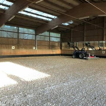 Die Anlage verfügt über 15 Boxen, 4 davon sind Außenboxen. Neben einer gepflegten, freundlich hellen Reithalle (20m x 40m), gehören ein Springplatz mit Wall und Galoppierbahn sowie ein Außenplatz zur Reitanlage.