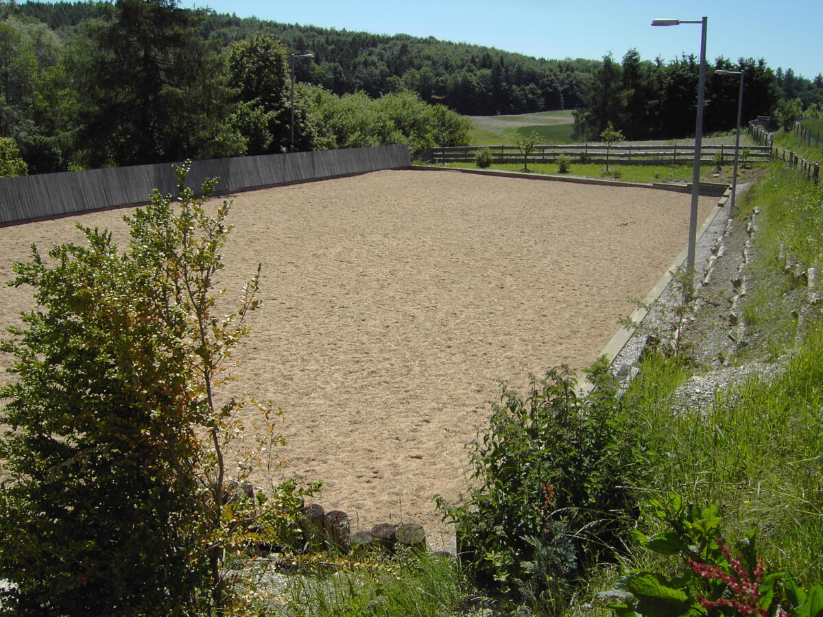 20x40 Meter Reithalle mit neuer Tretschicht und Bewässerung 20x60 Meter Ganzjahresaußenreitplatz mit Flutlichtanlage, eingezäunt, Bewässerung und neuer Tretschicht einen Longierzirkel mit Flutlicht und Bewässerung einen Hackschnitzel Platz zum Freilaufen oder für Bodenarbeit Ganzjahrespaddock mit Sand (35 x 18) Waschbox und Solarium Beheizte Sattelkammern und Toilette Nettes Stüberl beheizt und mit kleiner Küche ausreichend Putzplätze und Futterkammern Koppeln allein oder zu zweit, Koppelgang bi sin den Spätherbst sofern es die Witterung zulässt Für die nasse und kalte Jahreszeit stehen verschiedene Paddocks und Freilaufmöglichkeiten zur Verfügung und eine Führanlage regelmässige Kurse Anhängerstellplätze